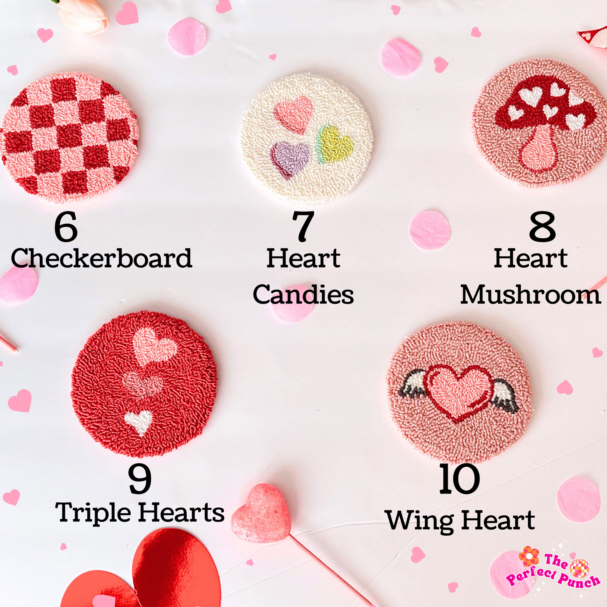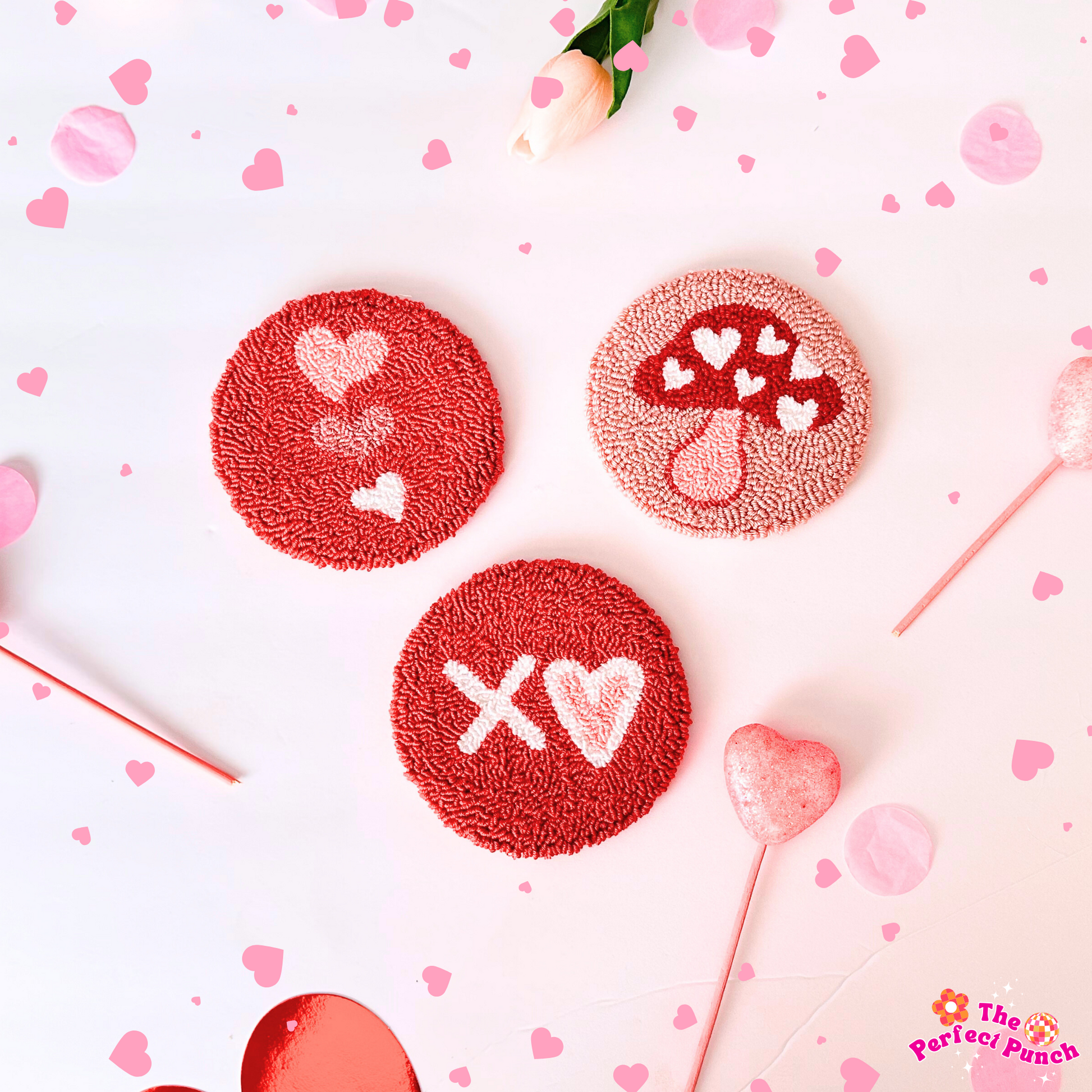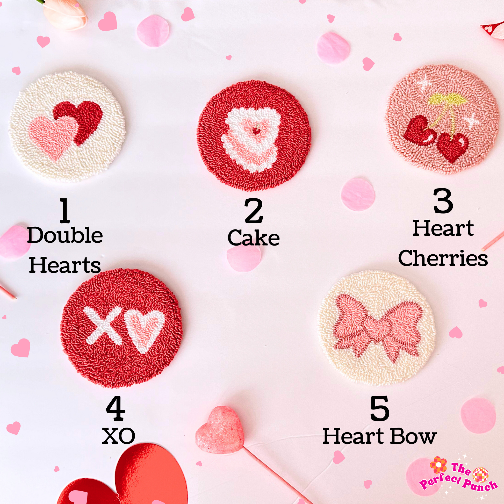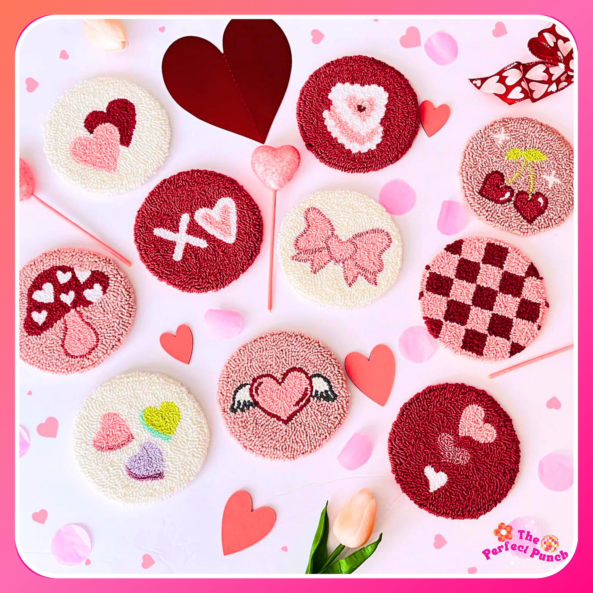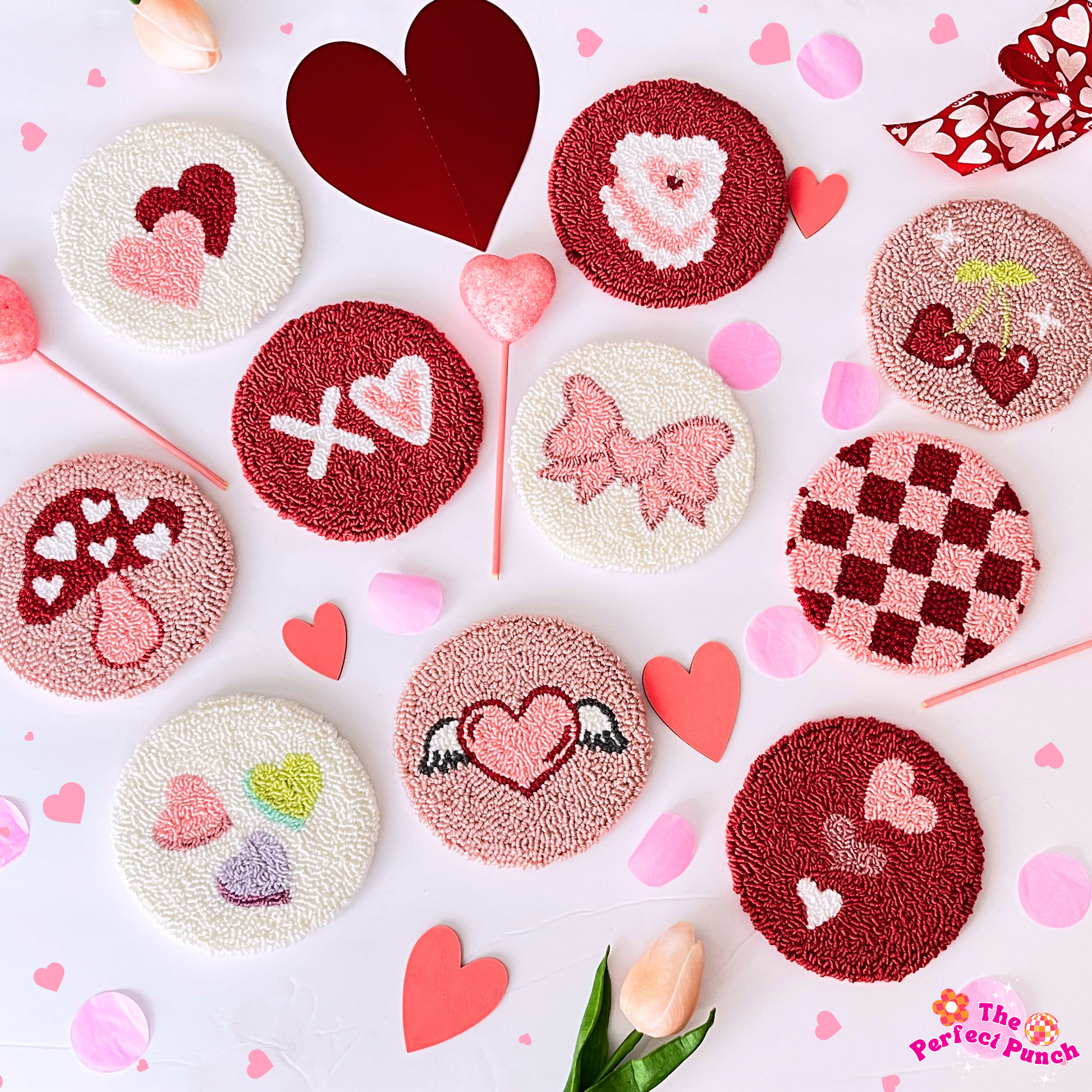 Our Coquette Punch Needle Mug Rug Coasters are the perfect addition to your space! Our handmade punch needle coasters come in a variety of designs, and are designed so you can mix and match and easily create a cute set! Our Mug Rug Coasters make a great gift for any occasion and add the perfect aesthetic to any space!